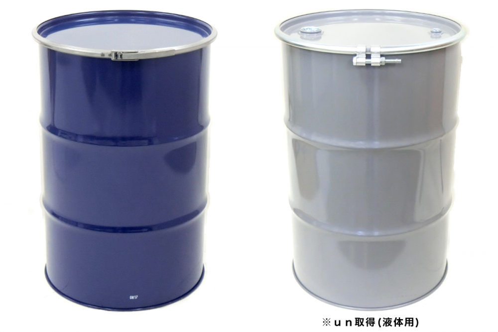 オープンドラムには燐酸亜鉛表面処理のままのものと、エポキシ樹脂系塗料又はフェノール樹脂系塗料を内面に焼付塗装したものの2種類があります。